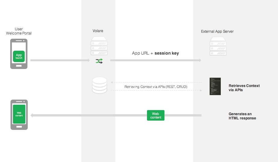 When your app is invoked, Cloud4Wi will make a web call to your app's endpoint, appending a few parameters to the request, including a session key and other parameters.
