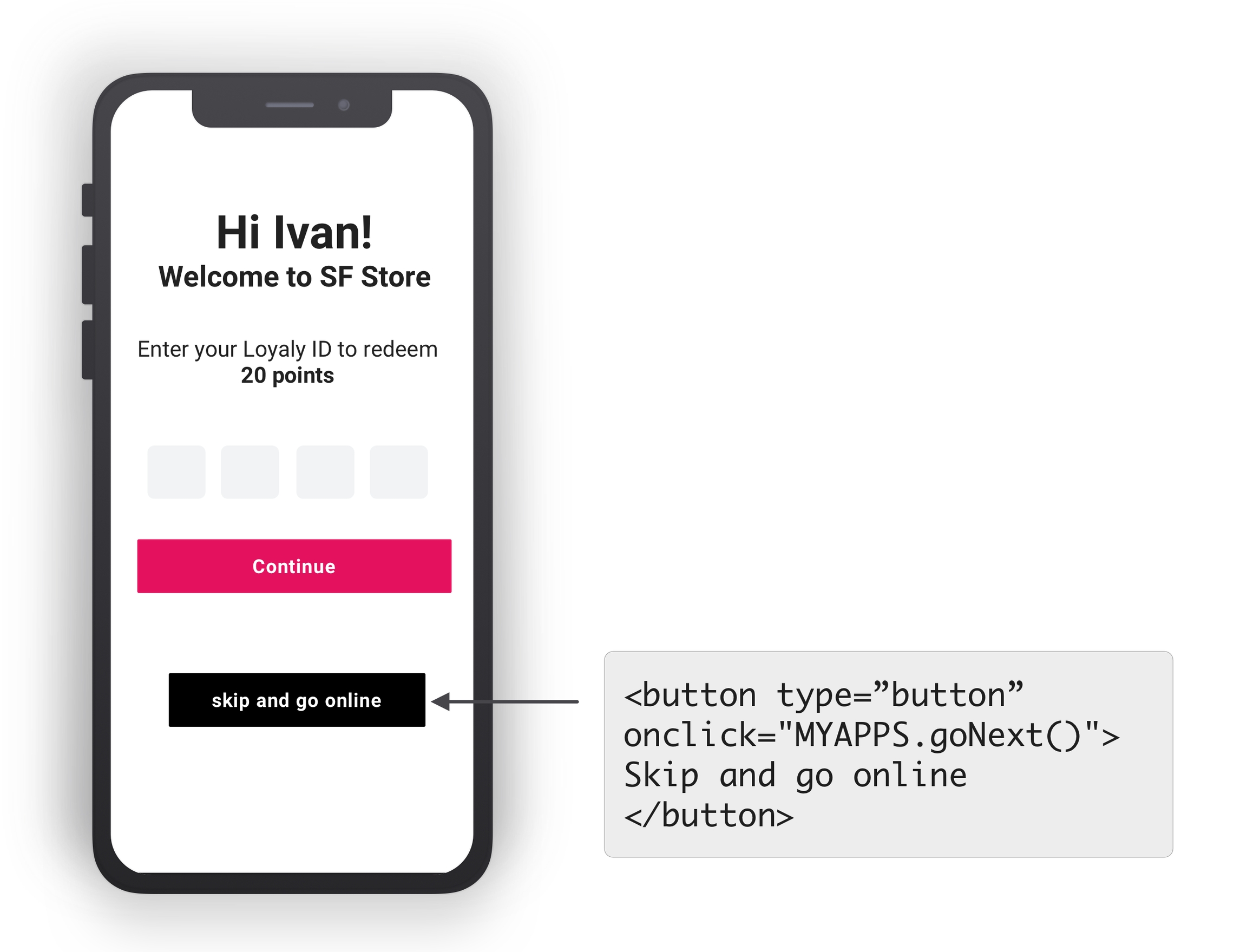 The SDK offers multiple methods to handle the navigation through the onboarding flow. Invoking simple methods such as MYAPPS.GoNext() allow to send the use to the next step of the journey without having to worry about carrying session data.
