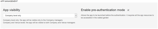Enable pre-authentication mode: You can decide to show the app for guests that haven’t performed the authentication on the Splash Page. We suggest to enable this setting for all your apps.