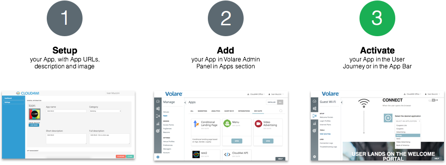 With MyApps you can adapt and deploy your existing services and experience (for example, a loyalty program onboarding, or a train ticket verification) into the WiFi Access Journey. Or, you can develop new ideas from scratch, designed and optimized for the WiFi digital touchpoint.