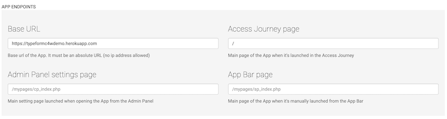 Note: remember to set the path of your app home page in the "Access Journey Page" input.
